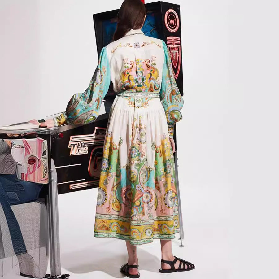 Women's Printed Fashion Long Sleeve Lace-up Dress